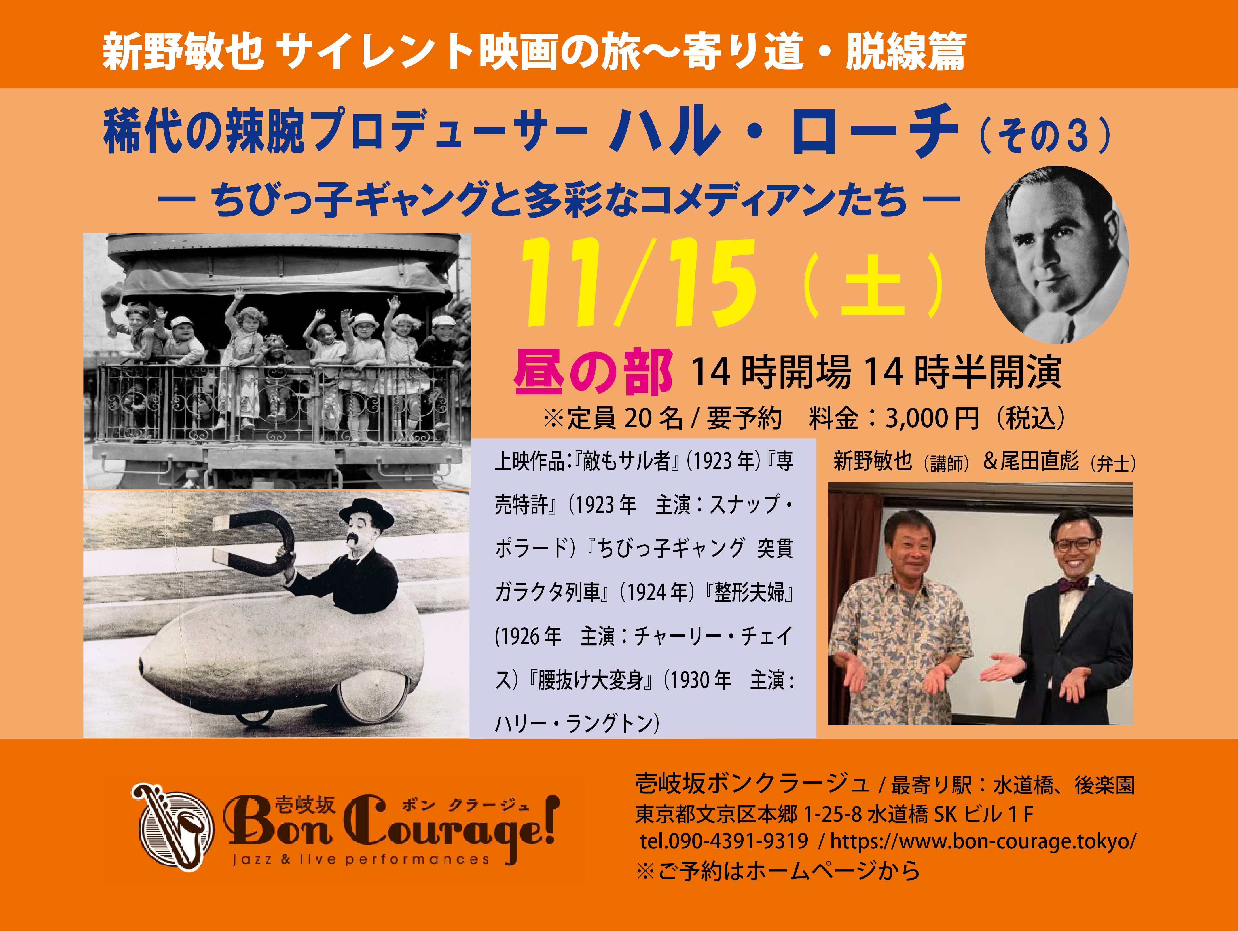 The Journey with Toshiya Arano into the Silent Movie World ― Detour and Deviation No. 9 / the Great Producer, Hal Roach Special (3) -the Little Rascals and other comedians新野敏也(講師)、ゲスト=尾田直彪(弁士)