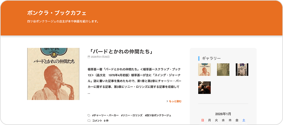 店主の私(藤井)の蔵書を自由に閲覧できます。ジャズの本、映画の本と雑誌、落語・講談の本がメインです。古本屋よりたくさんのいろいろな本があります。