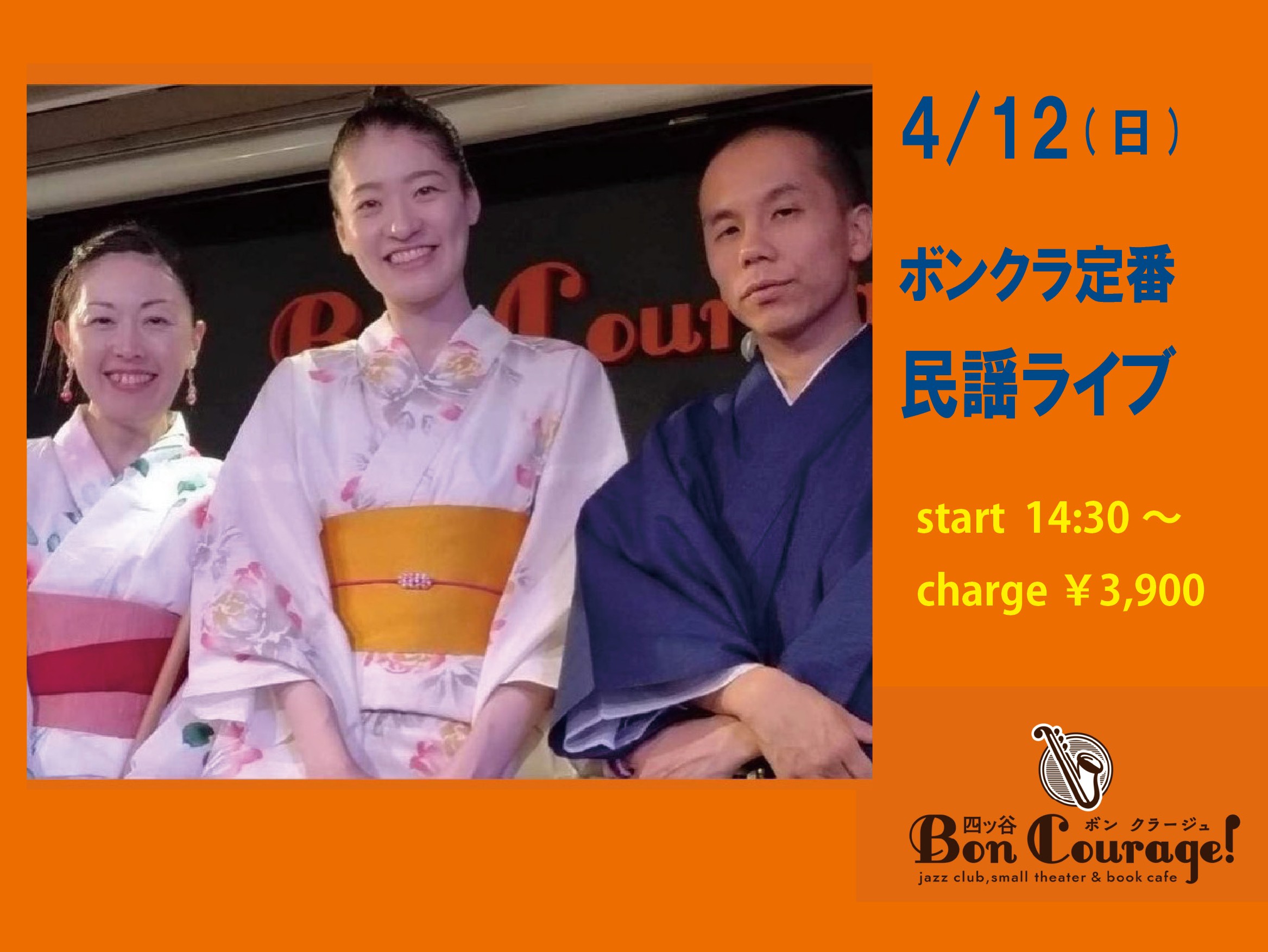 Hiroshi Yoshino(b), Eiichi Hayashi(as), Otohito Fuse(p), Tsuno-ken(ds)Open 19:00 Start 19:30